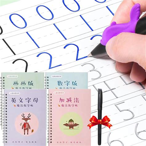 English Math Alphabet Drawing Magic Practice Copybook Reusable Grooved Tracing Handwriting Book Set