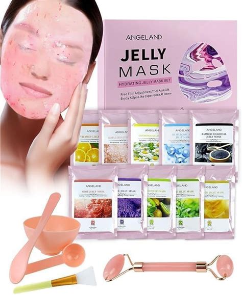 Jelly Mask Powder For Facials, 10 Flavors Hydrating & Moisturizing Jelly Face Mask Skin Care Rose Hyaluronic Acid 24 K