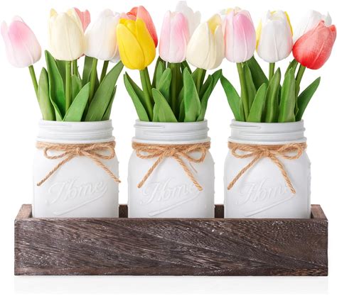 Spring Easter Decor, Centerpieces For Tables With Mason Jars, Tulips Artificial Flowers, Wood Tray, Easter Table Centerpiece, 22 Pcs Farmhouse Spring Party Decorations Indoor For Home, Office(Spring Decor)