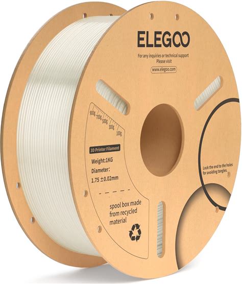 ELEGOO PLA Filament 1.75mm Translucent 1KG, 3D Printer Filament Dimensional Accuracy +/- 0.02Mm, 1Kg Cardboard Spool(2.2Lbs) 3D Printing Filament Fits