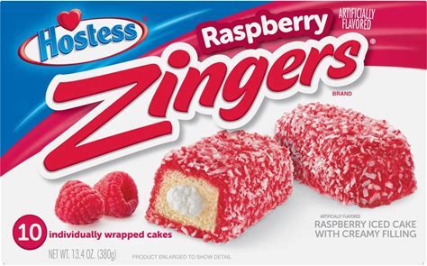 Hostess Zingers Snack Cakes, Raspberry Artificially Flavored Cake, 13.4 Oz. Box (10 Snack Cakes)