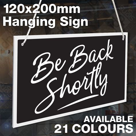 Be Back Shortly 3mm Rigid Hanging 120mm X 200mm Sign, Shop Window Door - 21 Colours
