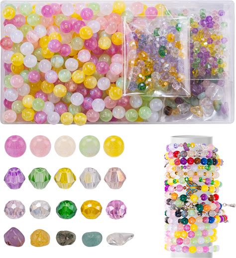 Craft Glass Assorted Beads For Bracelet Making Kit, Including Rondelle Beads, Facted Crystal Beads, Ideal For DIY Handmade, Charms, Necklaces &