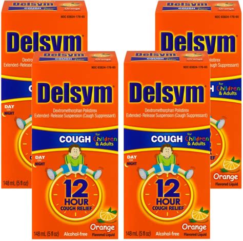 Delsym 12 Hour Cough Suppressant, Orange - 5 Oz, Pack Of 4
