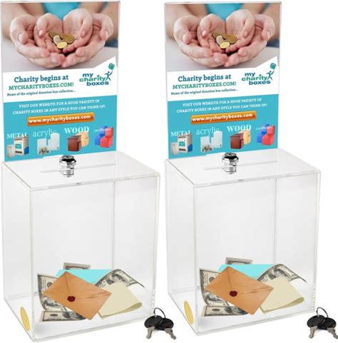 Chunful 10 Pcs Acrylic Donation Box With Lock And Sign Holder Clear Ballot Donation Boxes With Slot For Fundraising Suggestion Box Storage Container