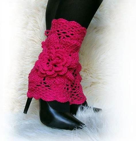 Pink Crochet Leg Warmers: Floral Lace Boot Cuffs