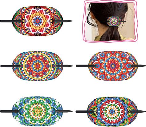 DIY Diamond Oval Hair Clips For Women, Mandala Wooden Hairpins, Leather Long Hair Fixed, Hair Ties For Long Hair, Decorative Oval Hair Accessories For