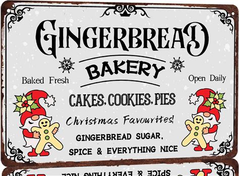 Gingerbread Bakery Baked Fresh Open Daily Tin Sign Gingerbread Christmas Vintage Metal Sign Wal Plaques Wall Art Cafe Bar Home Coffee Shop Wall Decor