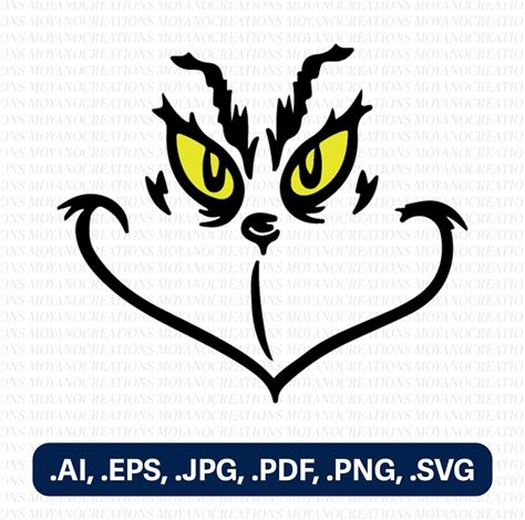 Grinch Face Svgs PNG, Jpg, Dxf, Eps, Ai And Pdf -Instant Download - Smile, Silhouette Cricut Cut File