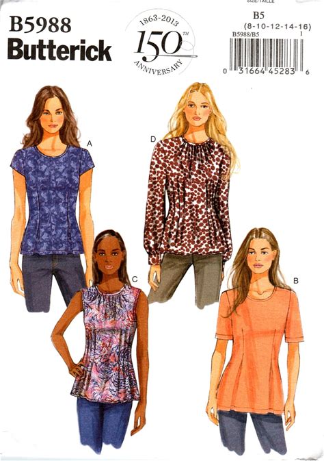 EASY TOPS Sewing Pattern, Front & Back Dart Tucks, Misses Petite Size 8 10 12 14 16,Fitted Or Loose Fit, Butterick B5988