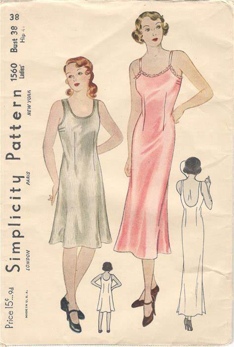 Simplicity 1560 1930S Misses Lingerie Dart Fitted Slip Pattern Shaped Neckline Two Strap Options Womens Vintage Sewing Pattern Bust 38 FF