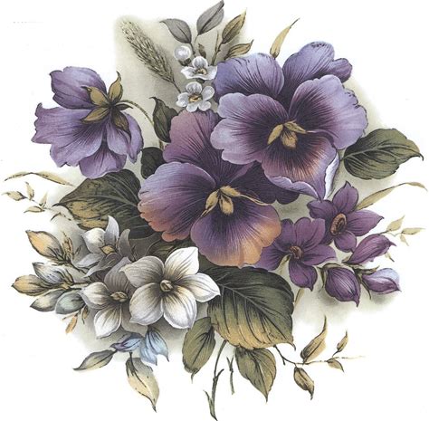 Purple Pansy Flowers Round Bouquet Overglaze Ceramic Decals 2.5 Inches (3 Decals)