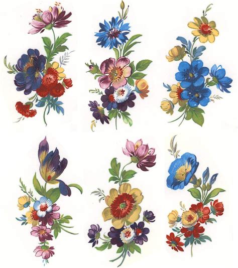 Flowers Mixed Floral Sprays Overglaze Waterslide Ceramic Decals 3 Inch (6 Decals)