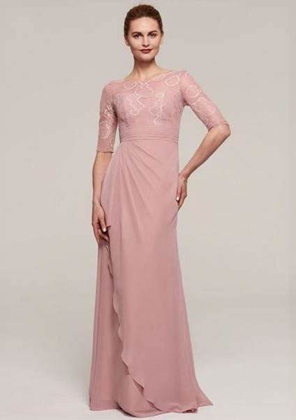 Two Piece A-Line Tea Length Wedding Guest Dress Mother Of The Bride Dress Sleeveless Long Sleeve Crew Neck Elegant Embellished Formal Wedding Guest Chiffon Wrap Included With Lace Ruffles Tier