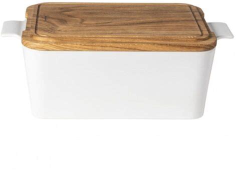 COSTA NOVA USA Gift Rectangular Bread Box With Oak Wood Ensemble, Casafina By COSTA NOVA, White