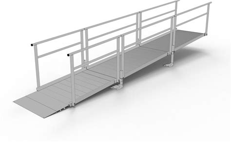 20'L Straight Aluminum Modular Wheelchair Ramp Kit With Handrails By Silver Spring