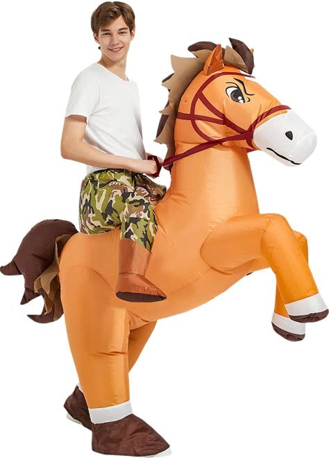 KOOY Inflatable Horse Costume Adult Blow Up Riding Cowboy Cowgirl Costume Funny Ride On Horse Suit For Men Women Halloween Party