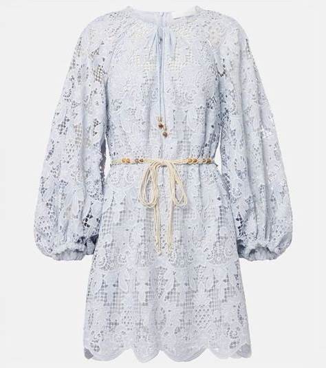 SIMKHAI Mickie Guipure Lace Mini Dress - Women - Light Blue Dresses - US 2
