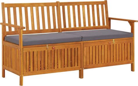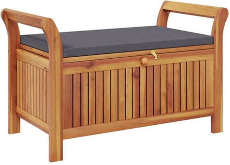 Outdoor Storage Bench Patio Deck Box With Cushion Solid Wood Acacia, Gray, Outdoor Benches By Vidaxl