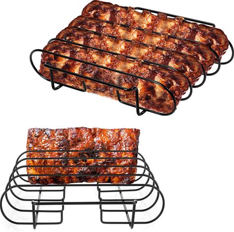 BBQ Rib Racks For Grilling And Smoking, Stainless Roasting Rack - Replacement Joe Classic Rib Rack For Holding 3 Full Ribs, Smoker Parts For Green Egg