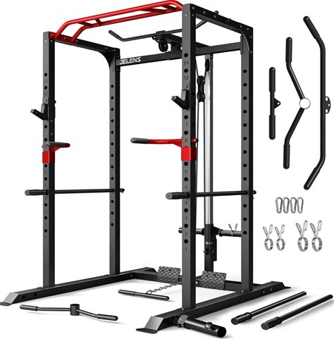 JELENS S11 Power Cage, 2000LB Multi-Function Power Rack With LAT Pulldown, Squat Rack With Adjustable Pulley System And Training Attachments, Weight
