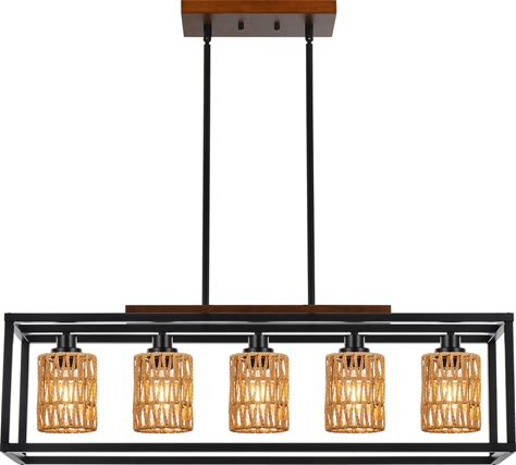 Island Light For Kitchen Dining Room Light Fixture Over Table - 5-Light - Black-Wood
