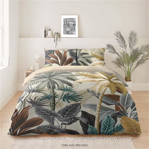 Palm Leaf Bedding Set: Tropical Duvet Cover, Botanical Bedroom Decor, B224