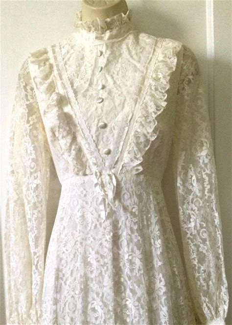 Ivory Ruffled Vintage Wedding Dress - Ivory Colored Antique Lace Victorian Style Prairie Wedding Dress