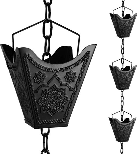 Rainchains Pacific Channel Rain Chain 8.5ft Black Aluminum Rain Chains For Gutters Decorative Chain.