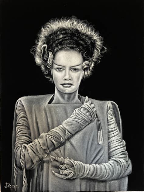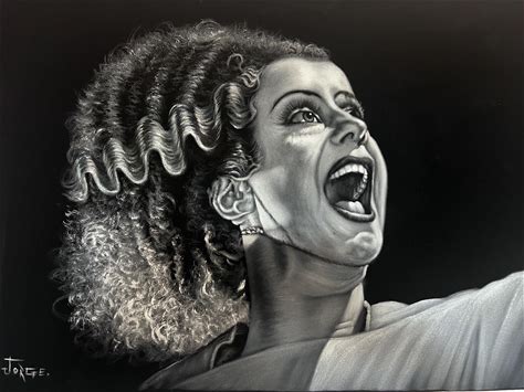 Frankenstein Monster Bride Elsa Lanchester Classic Monsters Horror Goth Black Velvet Oil Painting Hand Painted Signed Art
