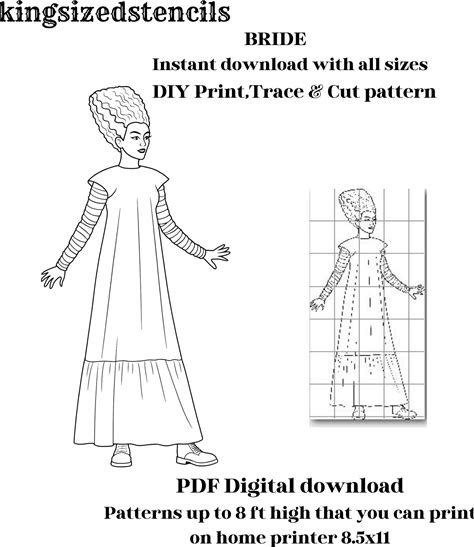 6ft High Bride Of Frankenstein, Halloween , Yard Art Display, Woodworking, Silhouette Stencil Template, Printable Trace Cutout Pdf.