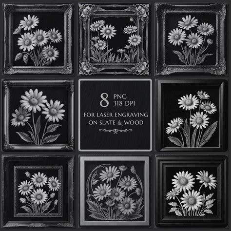 3D Daisy Flower Laser Engraving PNG File, Floral Illusion, Slate Coaster Engrave, Laser Burn Files, Slate Etching, Glowforge Lightburn CNC