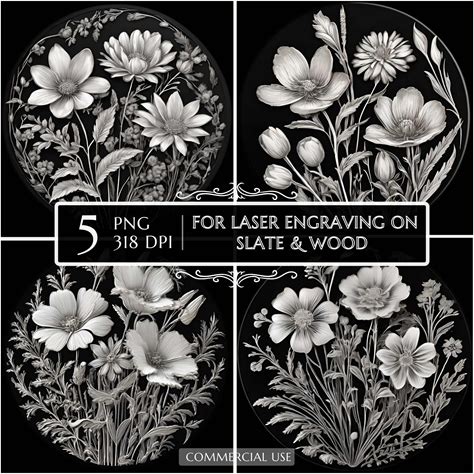 Wildflowers Laser Engraving PNG, Floral Laser Burn Design, Slate Coaster Etching File, Flowers CNC Router, Glowforge Lightburn, Laser Ready