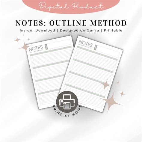 Student Note Taking | Outline Method | Study Resource | A4 PRINTABLE | Study Stationary | University A-Levels Highers | Print At Home