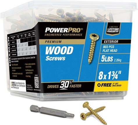 Power Pro Premium Exterior Wood Screws, 8 X 1-3/4"Inch All-Purpose Deck Screws For Outdoor Projects, T-25 Star Bit Included, Bronze, 803 Pieces |