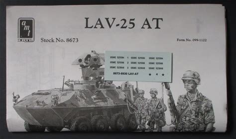 AMT/Ertl 1/35Th Scale LAV-At Anti Tank Vehicle - Decals From Kit No. 8673