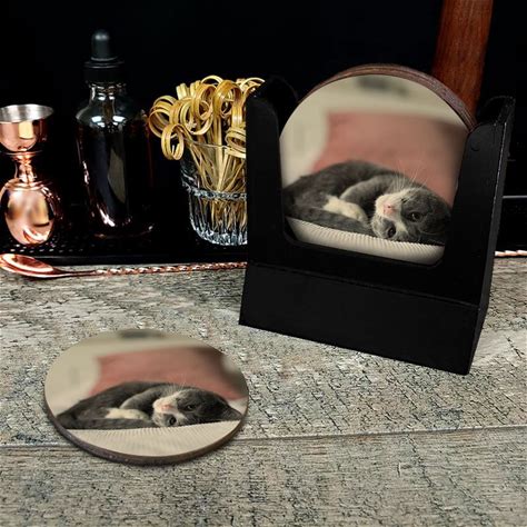 Custom Engraved Coasters | Personalized Leather Coaster | Set Of 6 | Drink Coasters With Holder | Laser Engraved | Tabletop Protection | Gift For