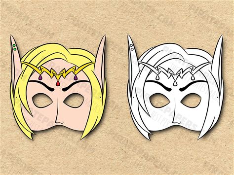 Elf Masks Printable Color + Coloring, Paper DIY For Kids And Adults. PDF Template. Instant Download. For Birthdays, Halloween, Costumes.