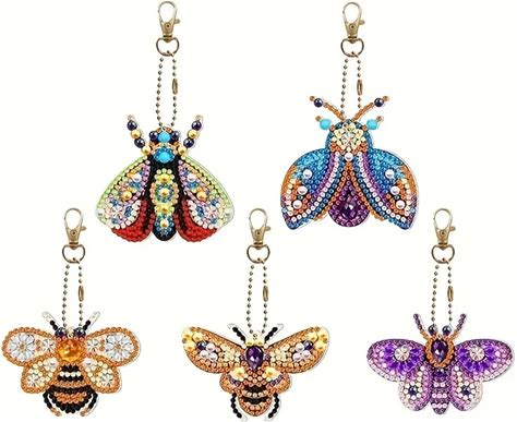 5Pcs/Setdiy Diamond Painting Keychain - Butterfly Pattern, DIY Decoration, Diamond Kit Craft