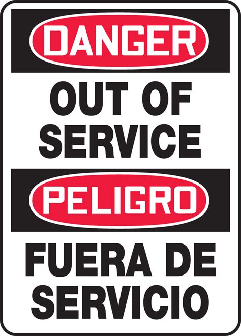 Accuform Signs 14" X 10" Red/Black/White Plastic Hazard & Emergency Sign "Danger Out Of Service Peligro Fuera De Servicio"
