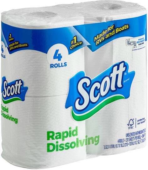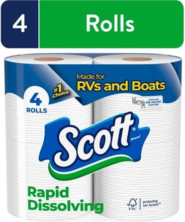 Scott Rapid-Dissolving Toilet Paper For Rvs & Boats, 4 Double Rolls