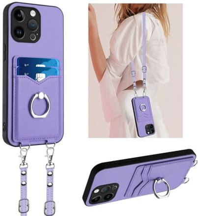 Shelltech For iPhone 16 Pro Phone Case For Women With Wallet Card Holder Removable Adjustable Shoulder Strap Lanyard Crossbody Neck Purse Cover For iPhone 16 Pro Purple