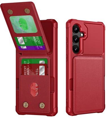 Shelltech For Samsung Galaxy S25 Wallet Case With 4 Card Holder Shockproof Anti Drop PU Leather RFID Blocking Cover Double Magnetic Clasp Credit Card Slots Purse Kickstand Red