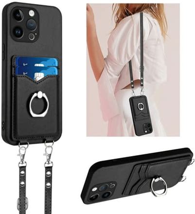Shelltech For iPhone 16 Pro Phone Case For Women With Wallet Card Holder Removable Adjustable Shoulder Strap Lanyard Crossbody Neck Purse Cover For iPhone 16 Pro Black