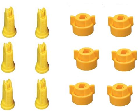 Pack Of 6 - Teejet Flat Spray Tips Yellow 110° 0.2 GPM @ 40 PSI & Nylon Caps AIXR11002-VP & CP114440A-6-CE