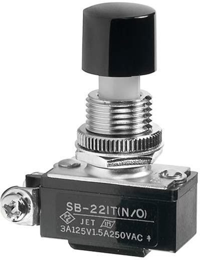 NSI 76070PS Push Button Switch, Off-On Circuit Function, SPST N.O, Brass/Nickel Actuator, 15/10 Amps At 125/250 VAC
