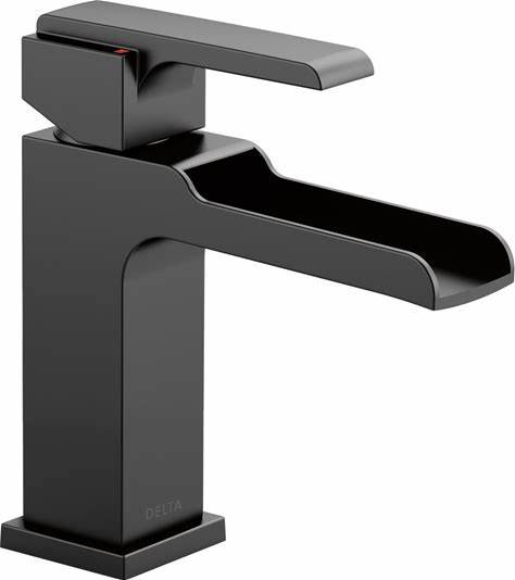 Delta 568LF-MPU Ara 1.2 GPM Single Hole Waterfall Bathroom Faucet Includes Metal Push Pop-Up Drain Assembly Matte Black Faucet Bathroom Sink Faucets