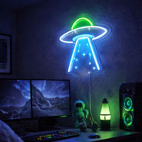 LED TOT Alien UFO Neon Sign - Colorful Sci-Fi LED Wall Light With Beam Design, 32 Inches