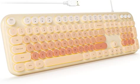 SQMD Wired Backlit Keyboard, Full Size 104-Key Retro Punk LED Backlit Keyboard With Colorful Round Keycaps For Desktop PC And Laptop