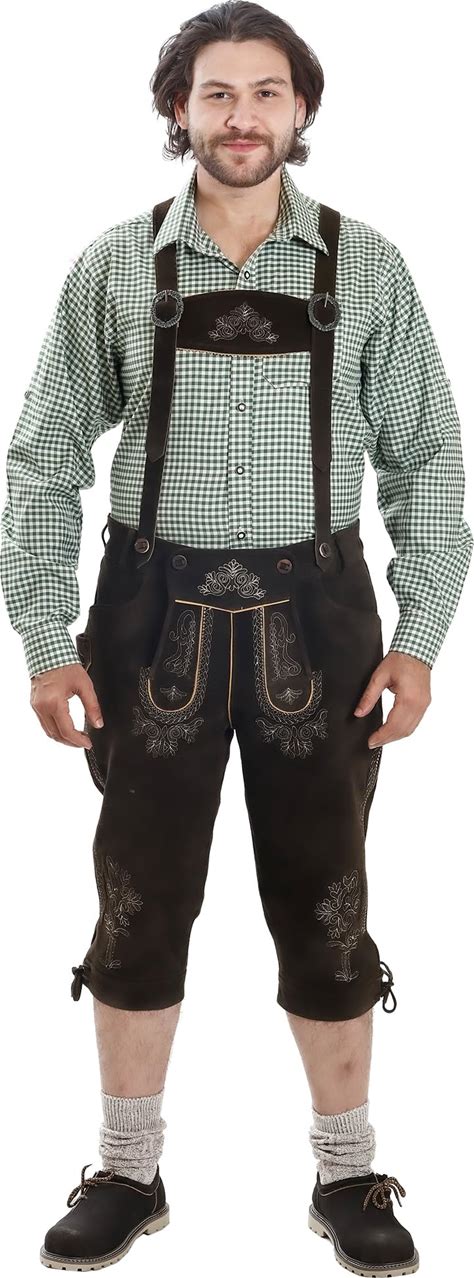 Lederhosen Store | Oktoberfest Trachten Short Lederhosen For Men | Traditional Authentic German Outfit | Wild Brown